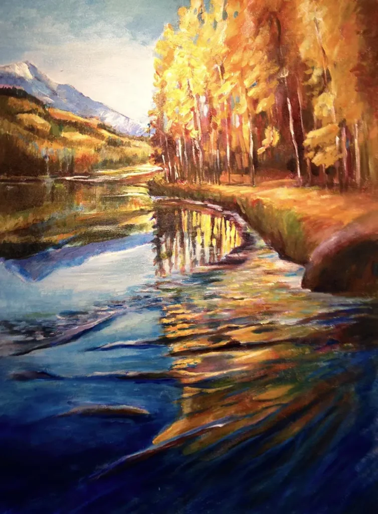 Painted in soft pastels on acrylic board, handsome dark wood frame, matted in glass
